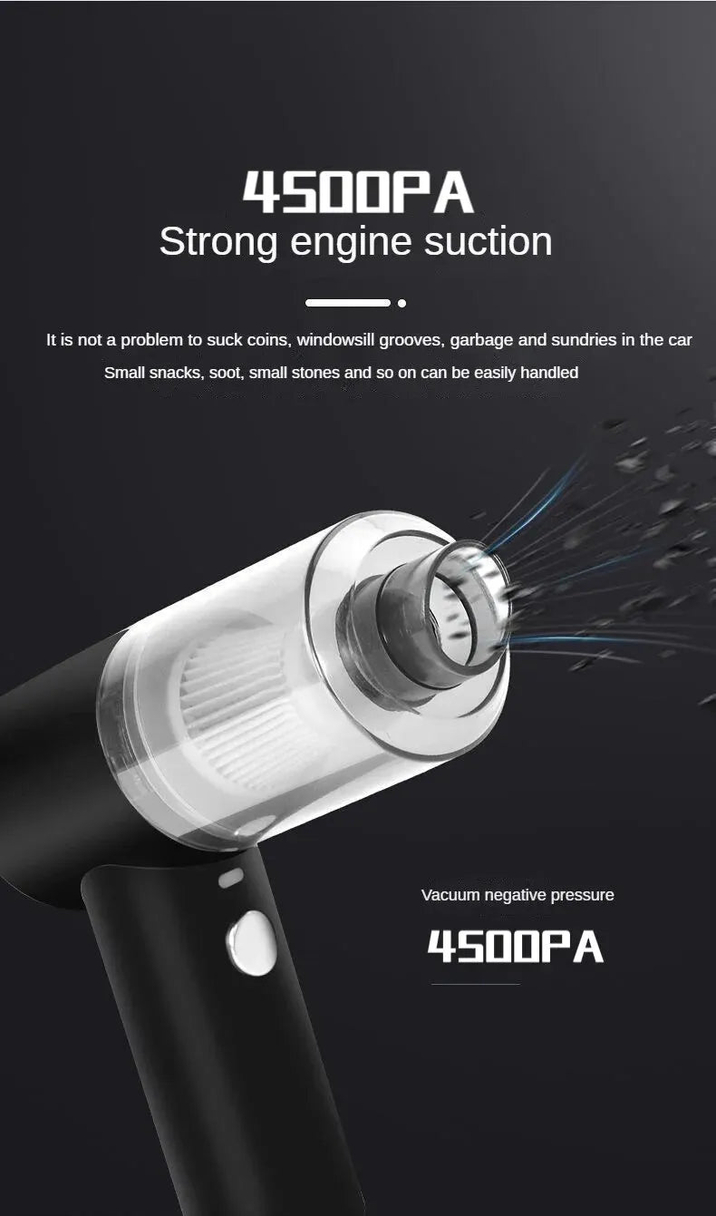 Mini colector de polvo portátil :El tamaño compacto de esta aspiradora hace que sea fácil de transportar y usar en espacios reducidos, como automóviles o habitaciones pequeñas.